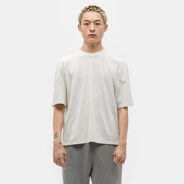 Entire Studios dart tee in “rice” white. Features an enzyme wash, boxy unisex fit, and dart detailing on the front and back. Shop signature sweats, cargos, outerwear, and more from Entire Studios at Notre.