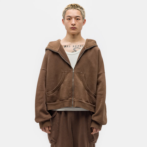 Entire Studios unisex organic cotton relaxed full zip sweatshirt in brown. Shop signature sweats, cargos, outerwear, and more from Entire Studios at Notre.