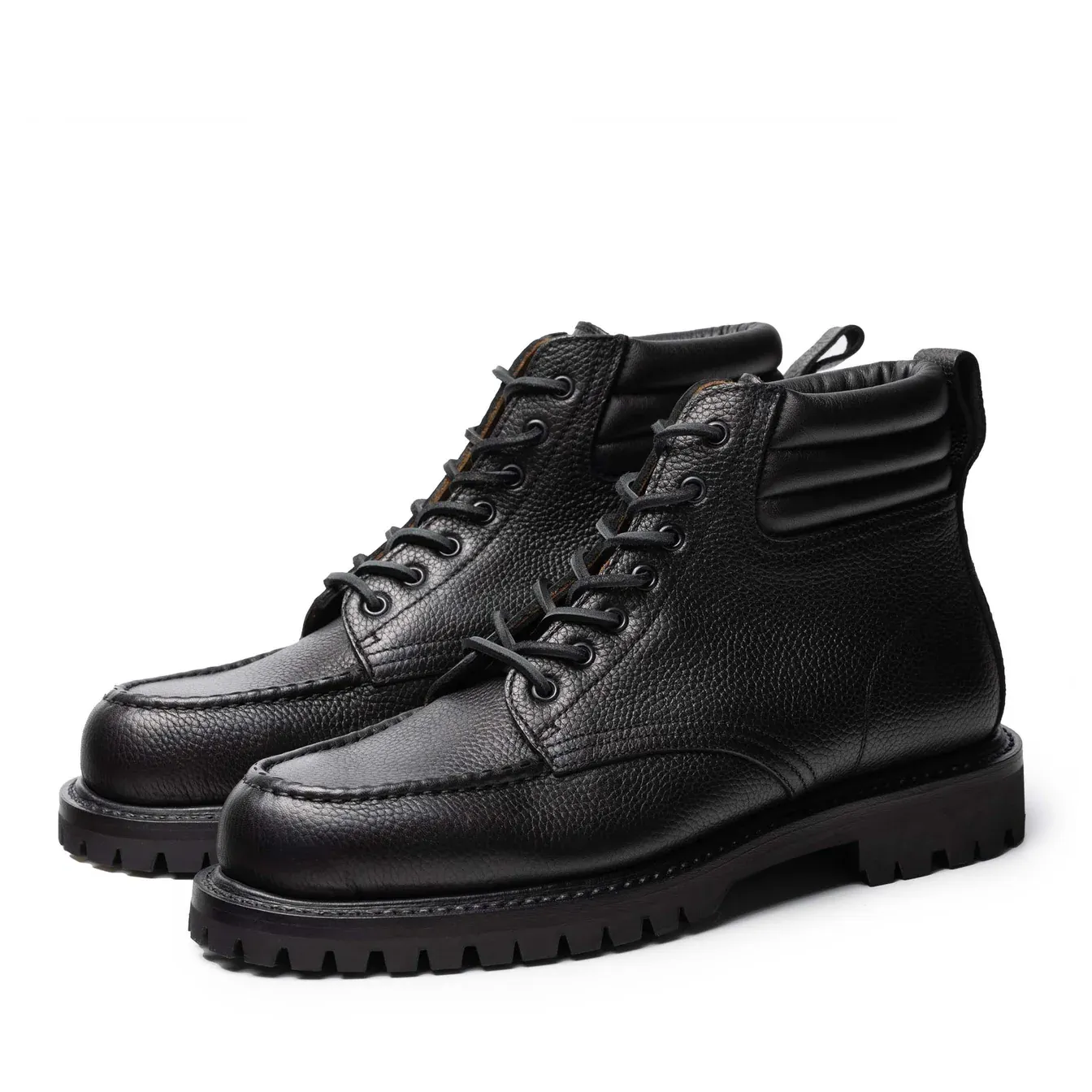 Meticulously handcrafted by master craftspeople, these feature a Hydra leather body characterized by its impressive heft and subtle lustre. Highlighted on the tongue and back heel are hits of Scotch pebbled leather, adding a hint of tactful distinction. Smooth calf leather lines the interior.