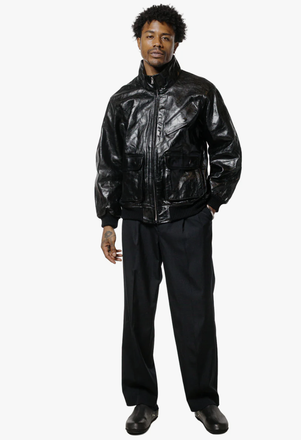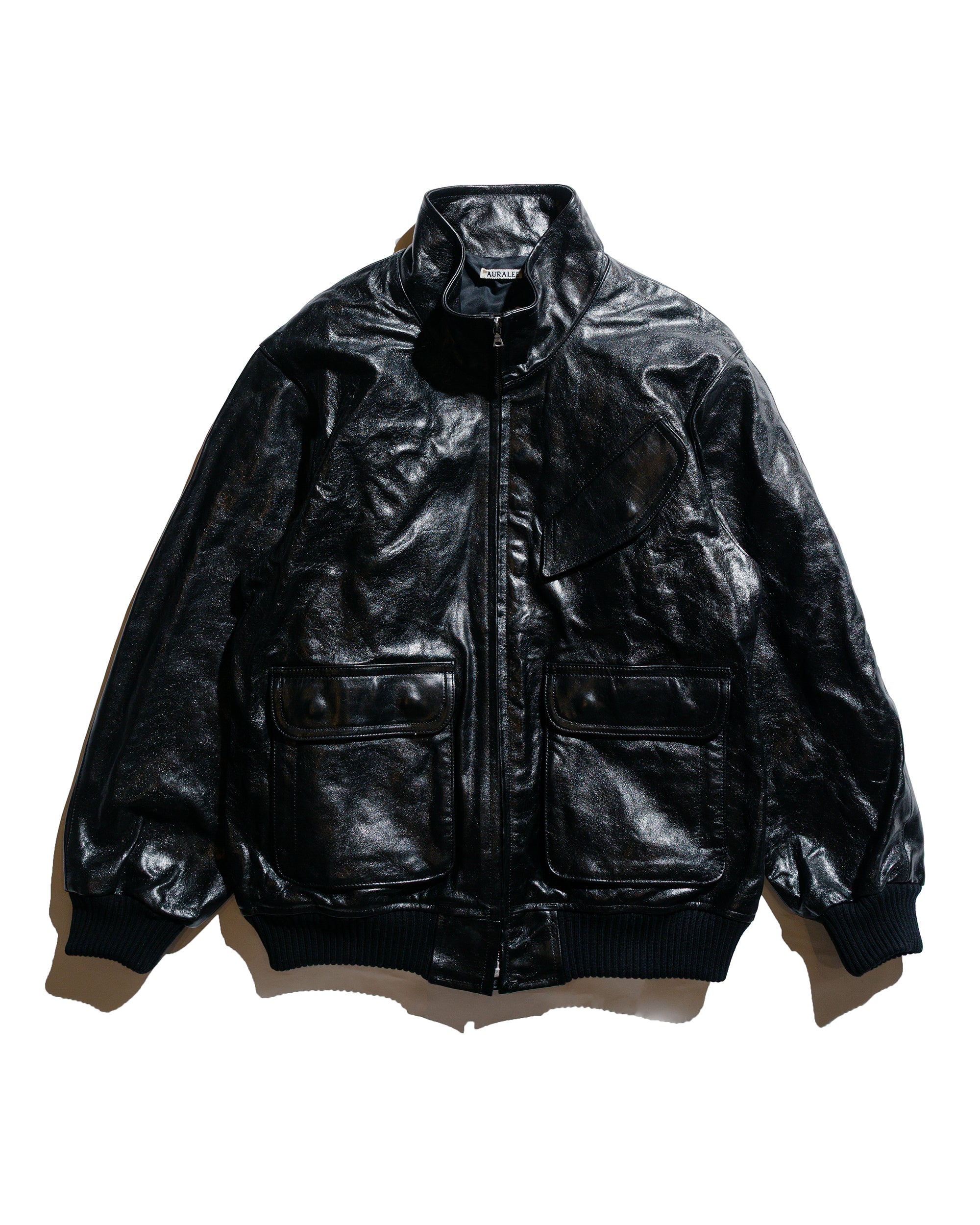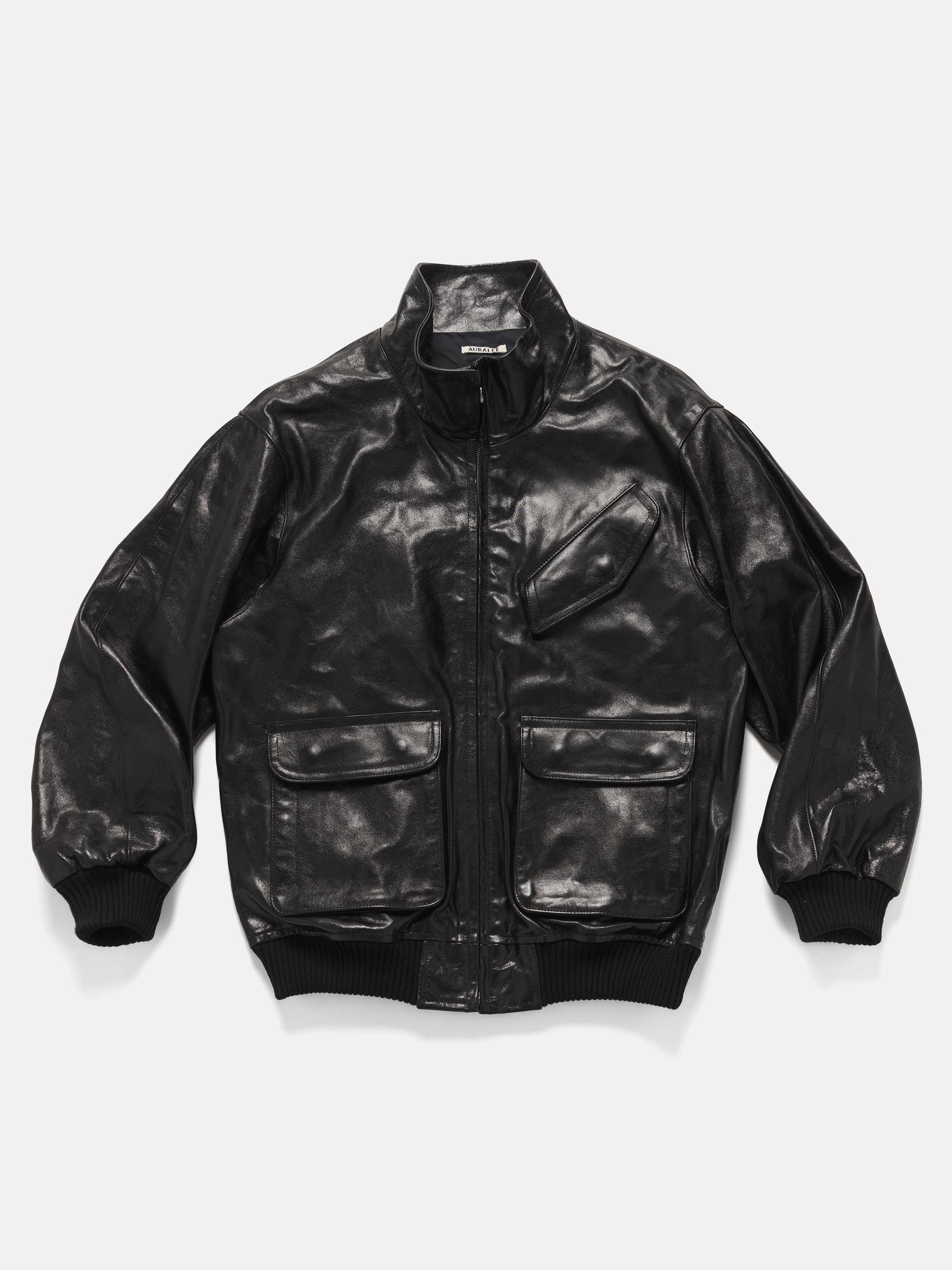 Handcrafted in Japan from Turkish lamb leather, the blouson is treated for a soft, dope wrinkle effect and a vintage-inspired patina, elevating it far above the generic black leather jacket. Or pretty much anythings, lols. The stand collar, angled button-flap chest pocket, and button-flap hip patch pockets with side entry orchestrate details that are at once refined and rugged. A sturdy zip closure, ribbed cuffs, and hem are signals of Auralee's thoughtful design for longevity and comfort.