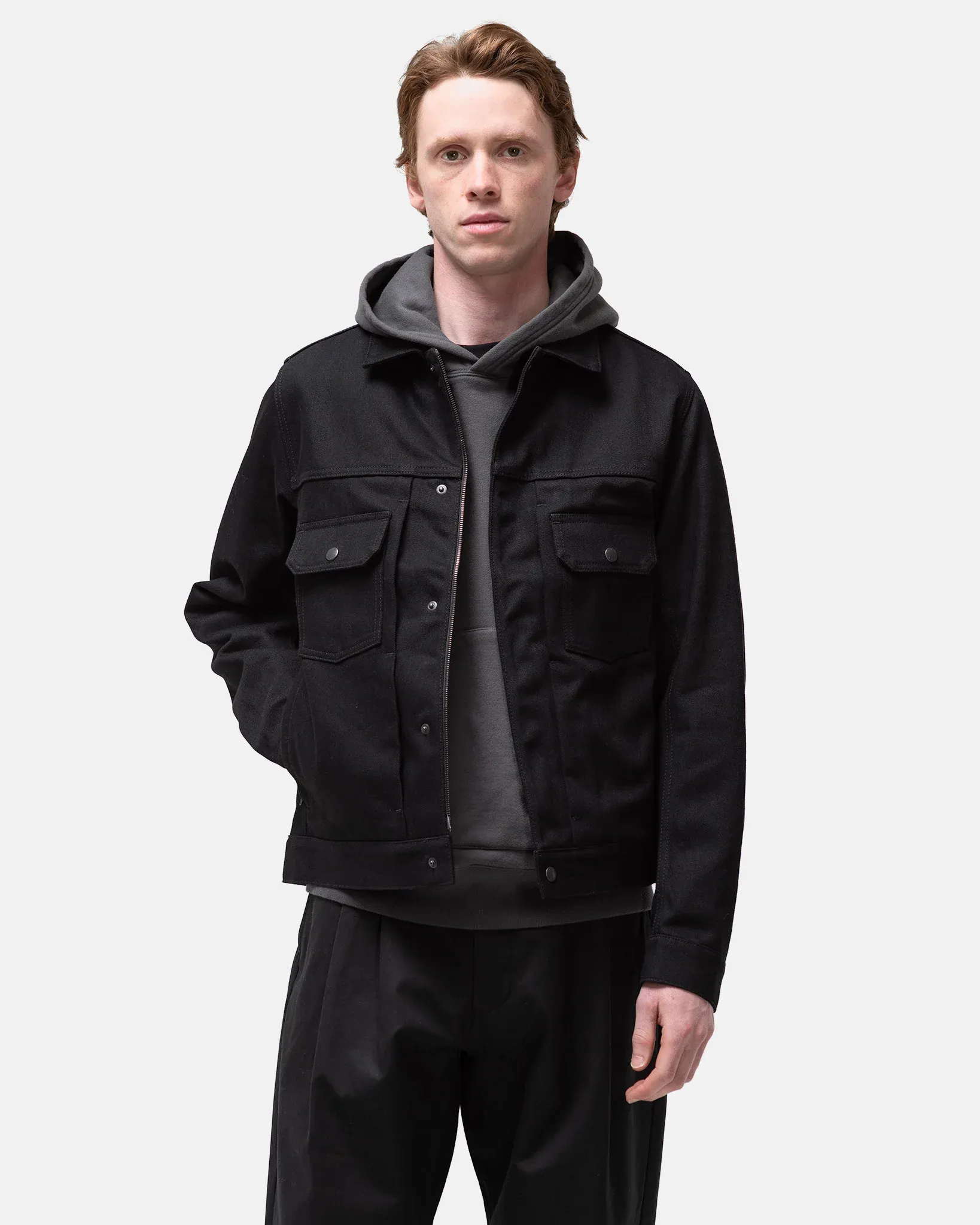 This isn’t your granddad’s trucker jacket. It’s got a chill, roomy fit and sleek, sneaky details like a hidden YKK METALUXE® zipper, snap-button storm flap, and extra-large chest pockets that actually hold stuff. Oh, and there are clever little zippers tucked into the pleats and side seams for bonus storage. Whether you’re jet-setting, city-striding, or just doing life—this jacket’s got your back. Literally.