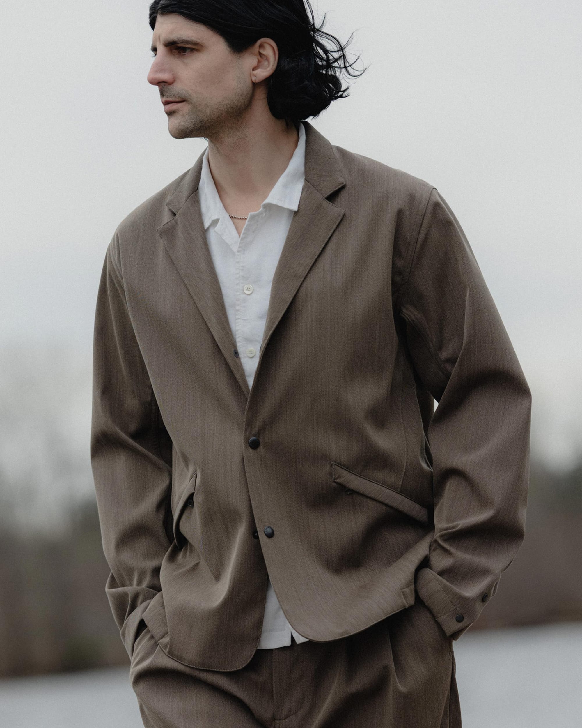 It’s the little things that elevate it: a curved placket, clean notched collar, and zippered pockets that don’t mess around. The Bureau’s got that effortless style-meets-function energy that works anywhere—from boardroom to back alley.