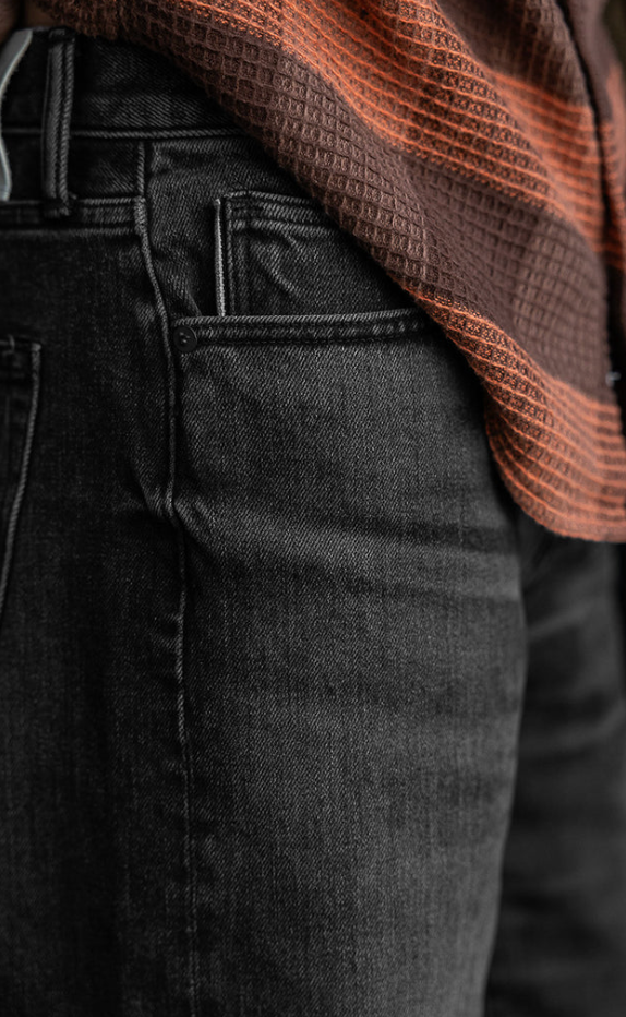 Where Kato differentiates itself from others, and where the Style Hierophant pays closest attention, is in the make. The "4-way stretch" selvedge is notable here. Unlike run-of-the-mill stretch denim (the kind that feels like athletic wear and looks shiny after three washes) Kato's yarn is "core spun." The fiber is completely wrapped in cotton. This locks in the epic comfort but sets the dye up to fade like old-school, non-stretch jeans. Artful aging. You won't be subjected to the shiny, synthetic look seen in cheaper stretch fabrics.