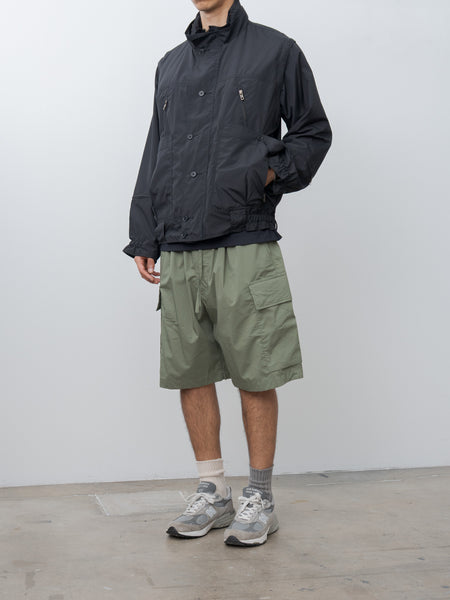 Wide fit cargo shorts from Kaptain Sunshine crafted from a cotton poly blend. It is a smooth material that balances lightness, suppleness and structure. Details include a drawstring elastic waist, side pockets and large, functional wrap around cargo pockets. Made in Japan
