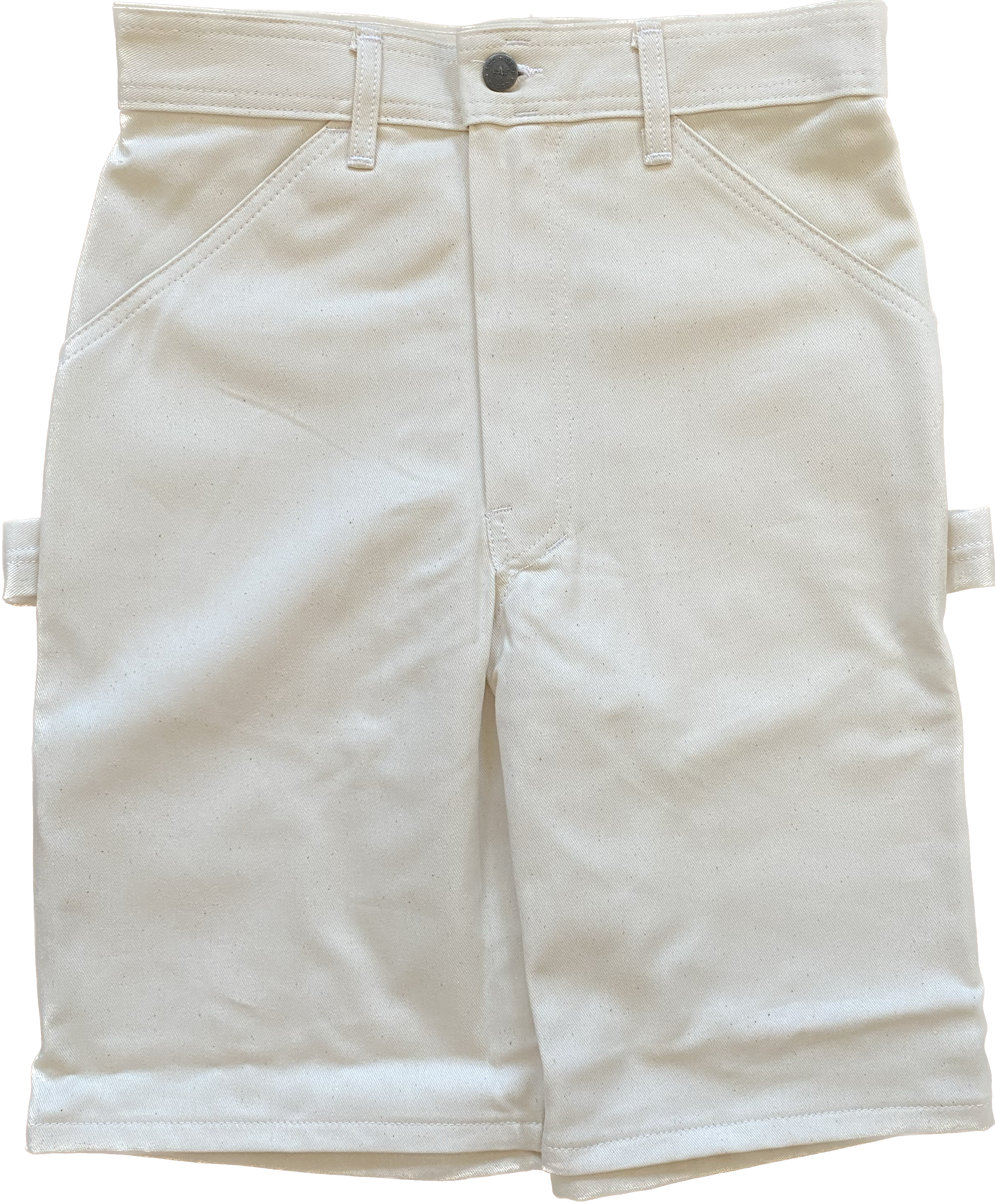 High-waisted unbleached painter shorts made by Tradesman USA. 100% unbleached & undyed cotton fabric 2 tool loops Triple stitched seams Heavy-duty canvas twill weave Deep scoop front pockets Fuller cut for a quality fit Bar-tacked at all points of strain Reinforced fly and comfort crotch 3 side rule pockets Quadrup