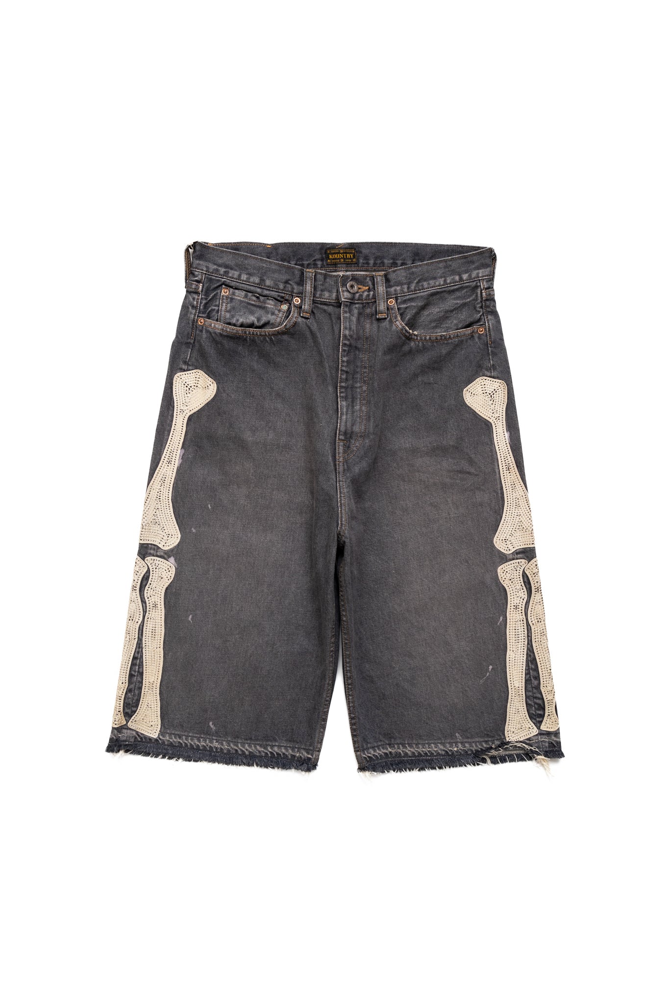 14oz BLK Denim 5P Shorts (BONE Embroidery)