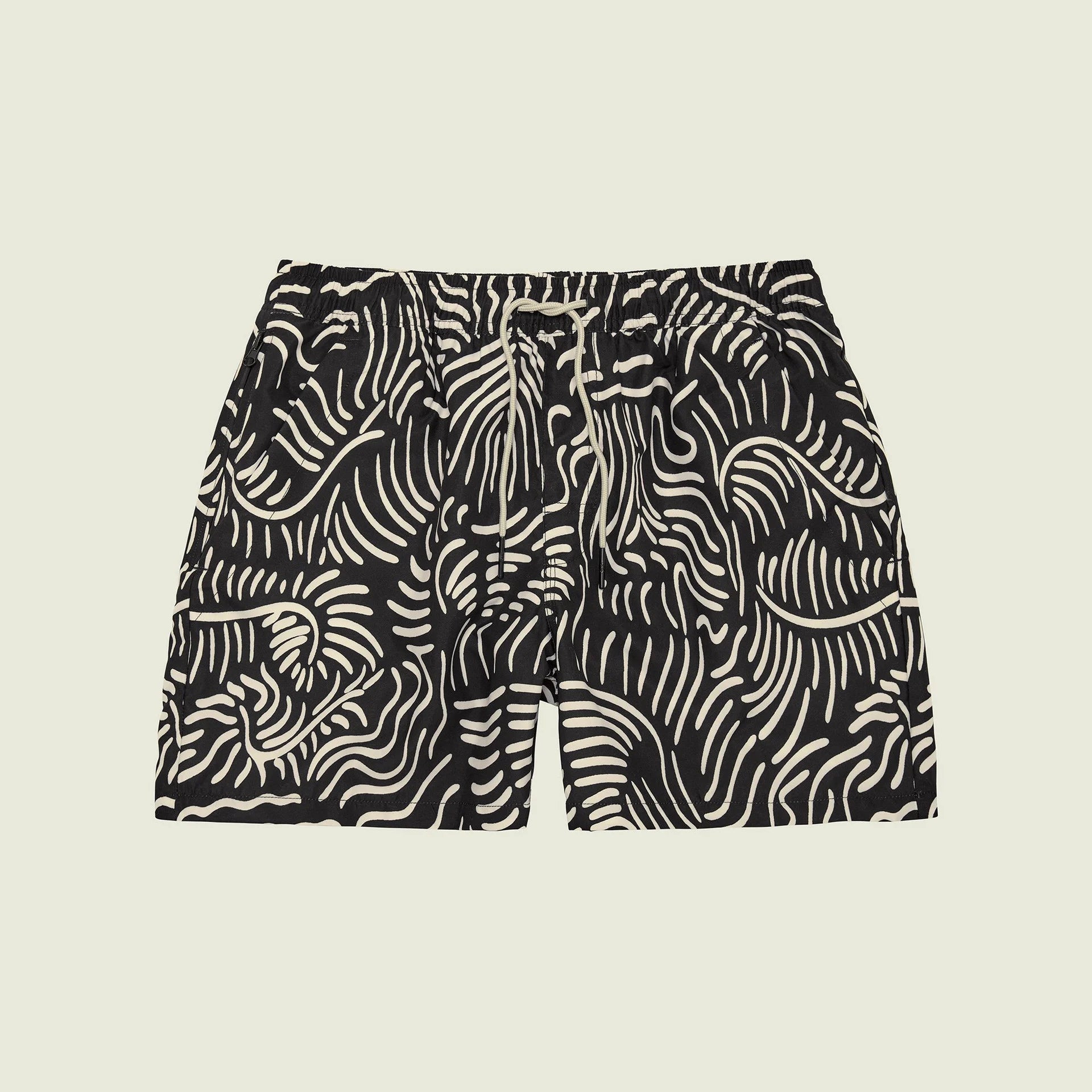 Tar Lorenzo Swim Shorts The Tar Lorenzo swim shorts are tailored from a brushed, quick-drying shell fabric, printed all over with botanical freehand strokes. Cut for a relaxed, straight fit with an elasticized drawstring waistband and built-in mesh briefs for comfort and support. Keep your keys and cards securely store