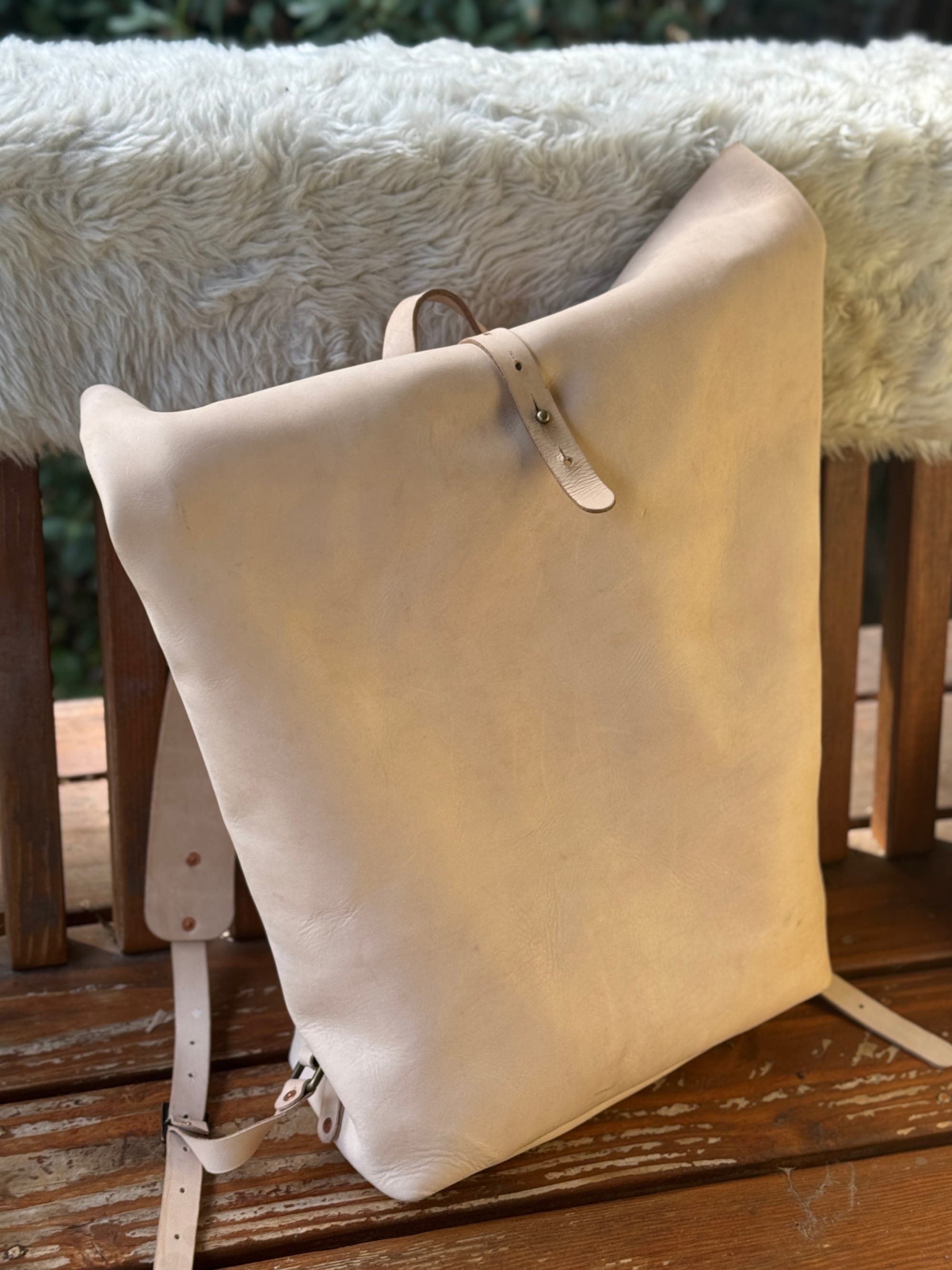 Like a soon-to-be-well-worn pair of selvedge denim showing its first signs of whiskering, my own Happy Patina backpack and notebook cover have begun their journey of personalization. The backpack really captured my fancy almost immediately with its minimalist design and no-frills, open-flap vibes. Simply put, I've been looking for a rucksack-style pack like this, in leather, for years. It's also an eye-catcher. I've been getting admiring comments on this thing ever since I started carrying it.