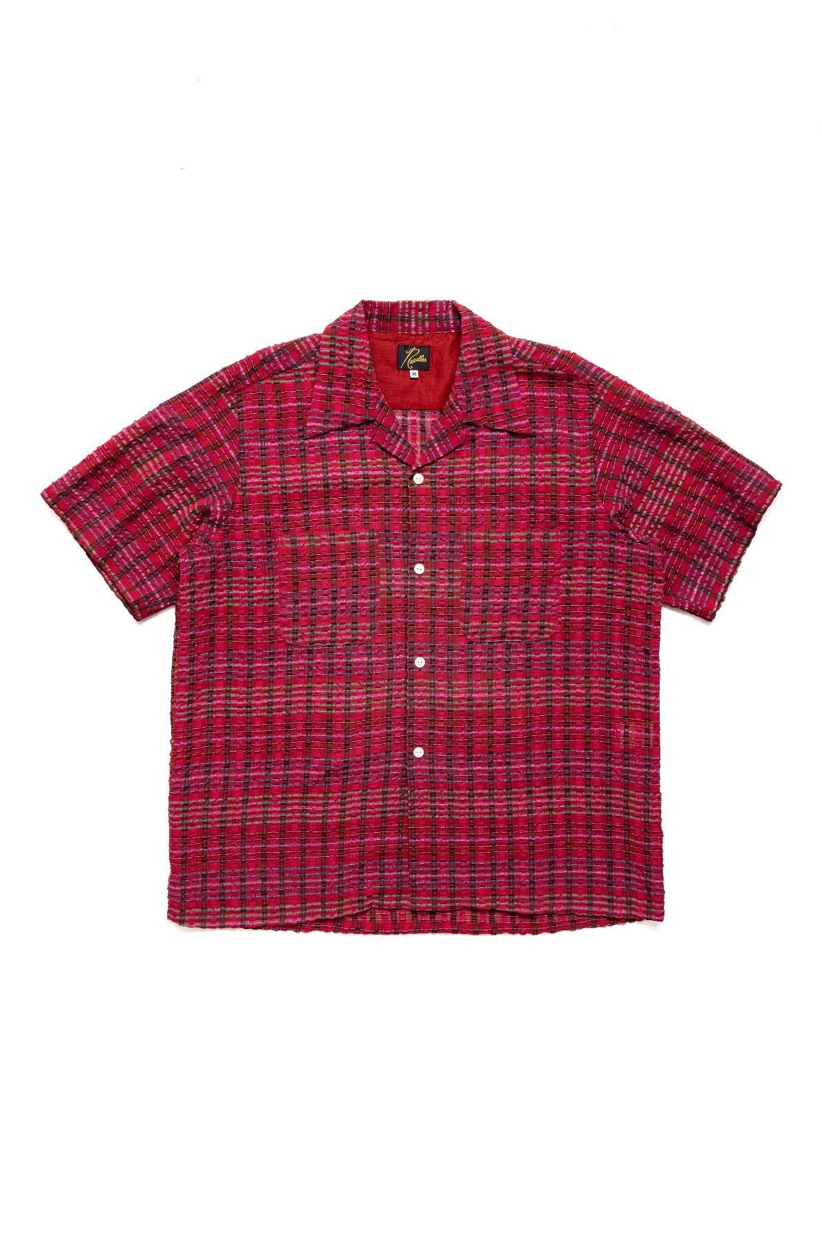 Open collar A relaxed silhouette Made of seersucker material that is smooth to the touch, making it comfortable to wear even in hot seasons. Color: Red 52% polyester 48% rayon Made in Japan Model is 6β²2 wearing a size M TAGGED SIZE S M L NECK - - - SHOULDER 19 20 21 CHEST 44 46 49 ARM HOLE 18 18 20 SLEEVE 9.75 10 11 CE