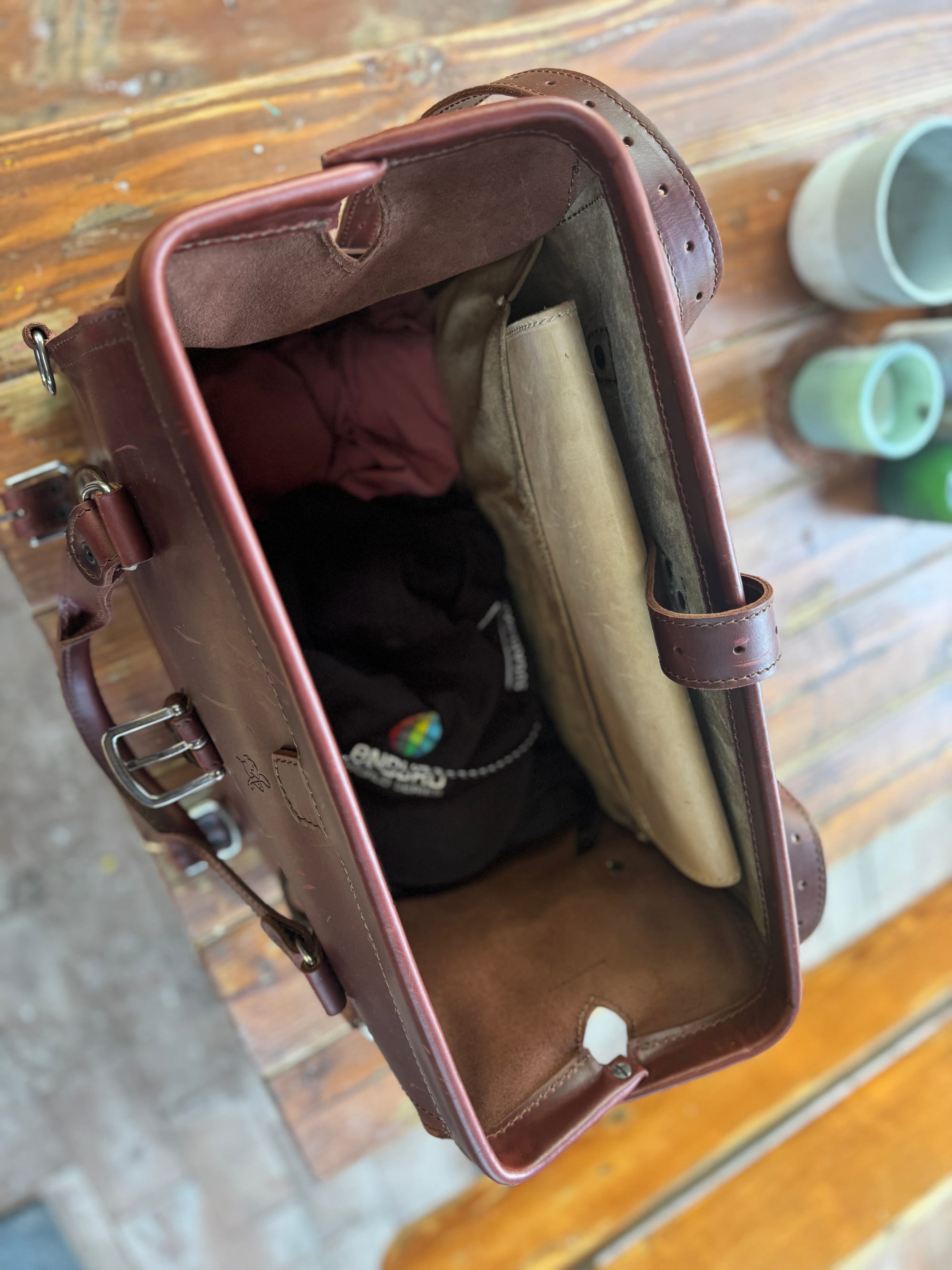 I quickly promised myself I would not baby this child. So I just went for it and dropped this fine hunk of top-grain leather into my routine like a rock into a pond. Ferdy's ripples touched everything: beach, gym, overnight camping trip. The bag took it all personally—in a good way. It kept opening its big grin and saying, give me more.