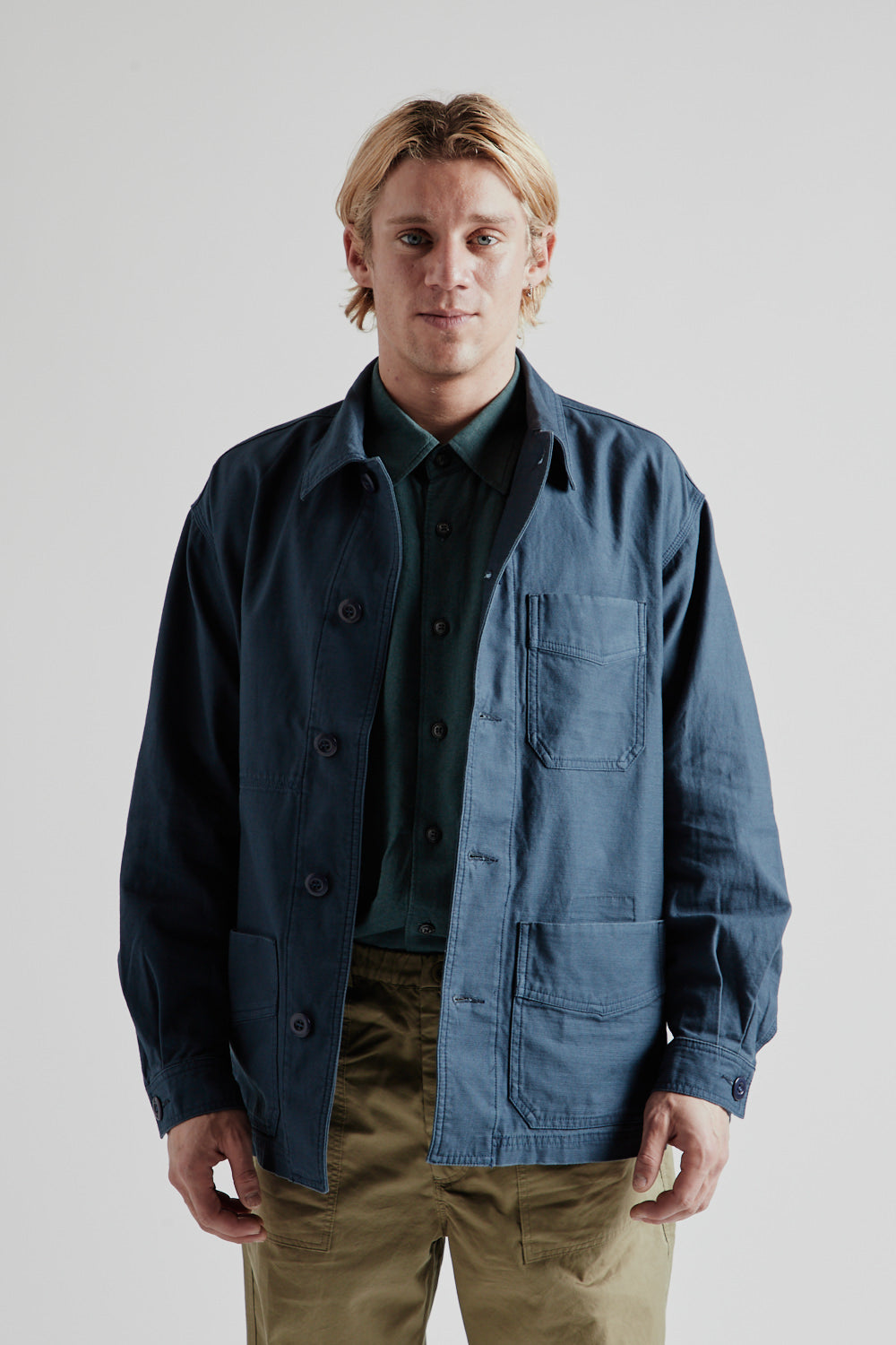 Draped in threads that whisper of toil and tales under azure skies, the French chore coat emerges from the shadows of yesteryear—a relic reborn, humming with rebellious charm. In the latter days of the 19th century, when laborers donned their cerulean armor, this "bleu de travail" (blue of work) was stitched for endurance, crafted from robust cotton or denim. Now, this rugged companion strides confidently through fashion’s fickle pantheon, as timeless as the constellations and always ready for an cheeky jaunt or sly move.