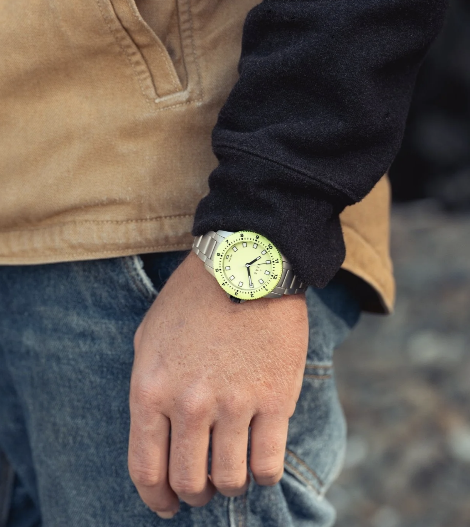 Portland, Oregon based watchmakers Vero have restocked their dope and dependable dive watch, the Crown Point, this time in a 38mm size. If your desires include a unique, lightweight dive watch that'll hold up as well at the coffee shop as it will in the ocean, this one's for you. My Cali friends and Maine boys, I'm looking at you.
